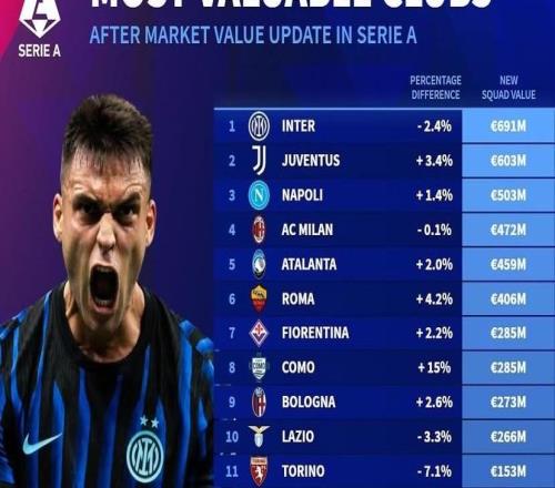 2025-10-08北京時間10月7日,在更新了意甲球員的身價之後,德轉還列出了此次更新後意甲俱樂部總身價的漲幅情況以及具體排...