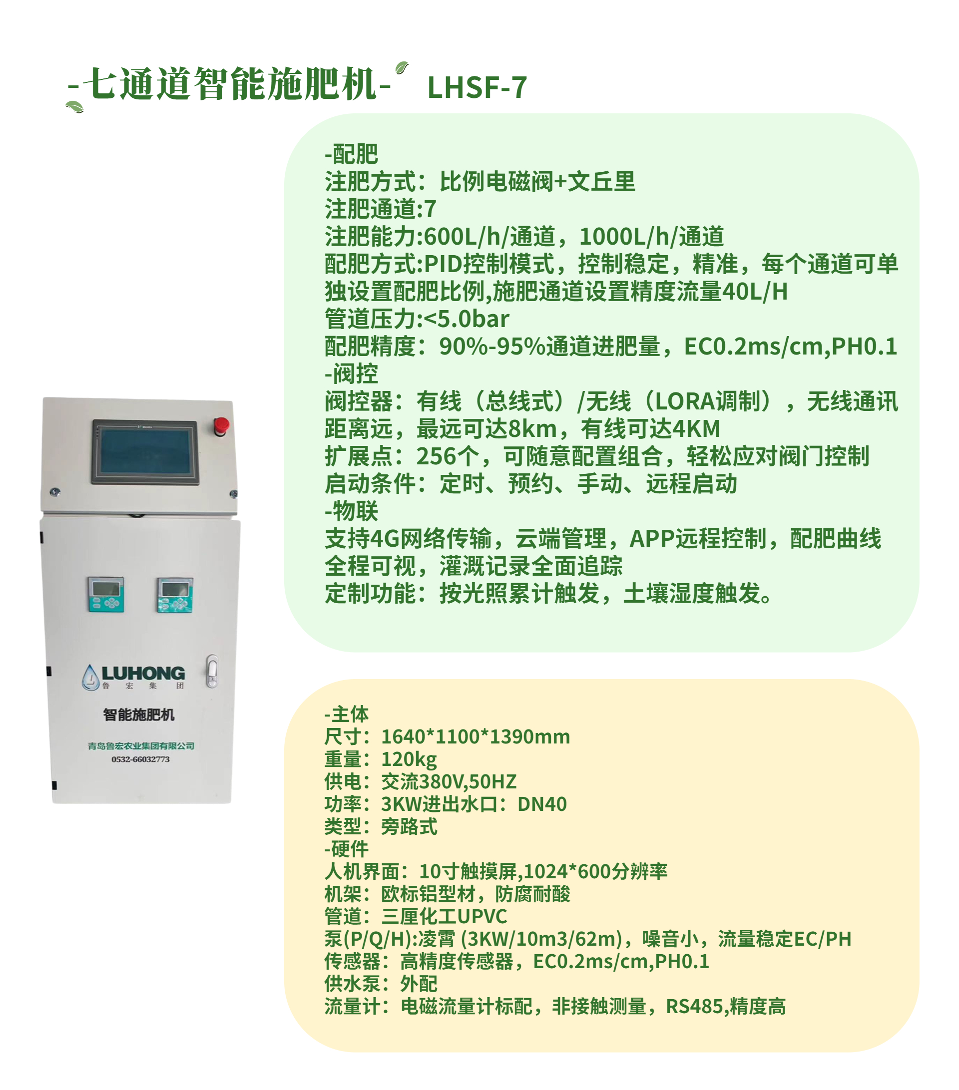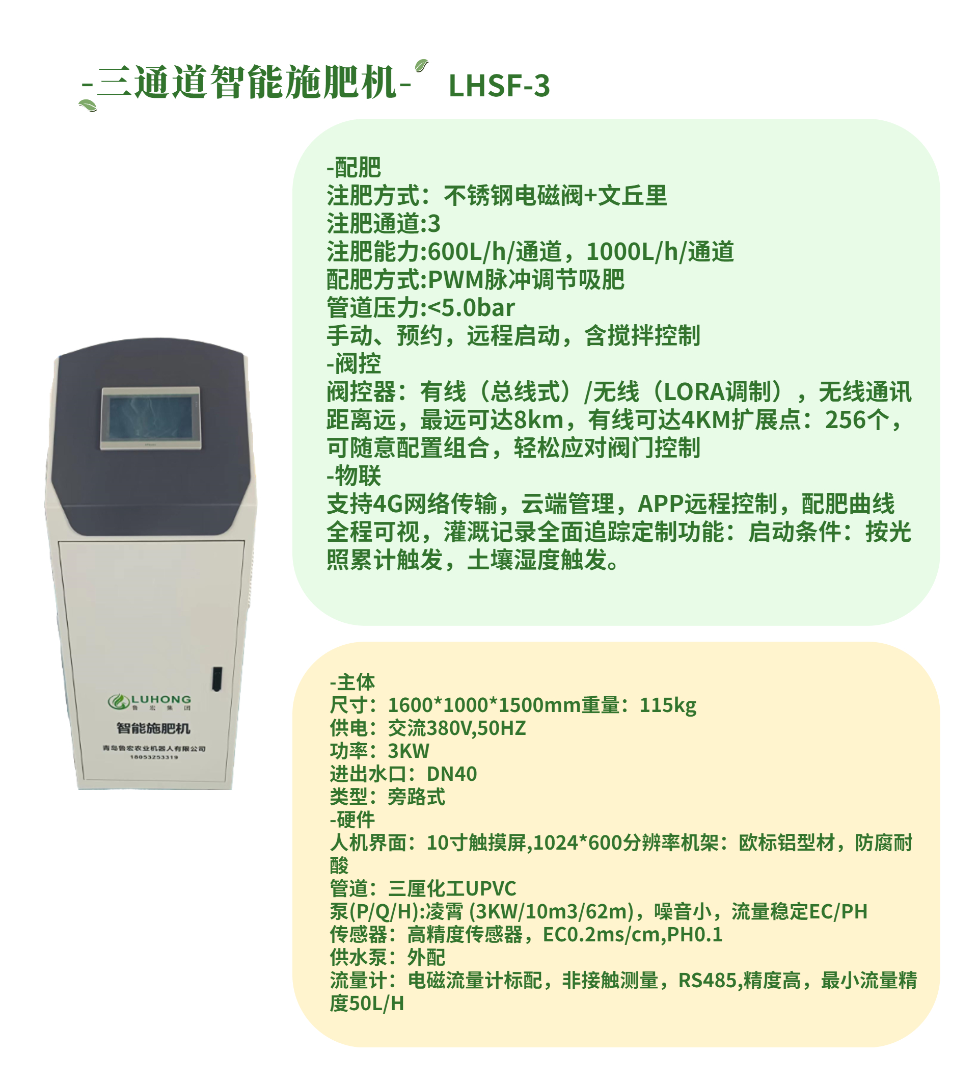 (5)高精度控製——高精度EC/PH控製,各通道施肥量控製精度可達98% ;
