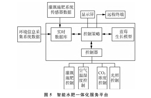 智能水肥一體化服務平台(圖5)是藍莓溫室智能水肥一體化係統的核心,智能水肥一體化服務平台需要對信號傳輸網絡傳輸的數據進行處理、存儲、分析,並根據藍莓生長模型做出決策。