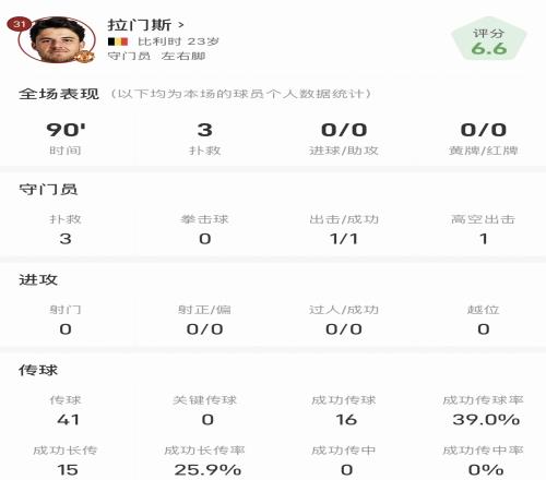 雷速體育10月4日宣 英超第7輪,曼聯在主場以2-0的比分戰勝桑德蘭。今夏加盟曼聯的門將拉門斯完成首秀。拉門...